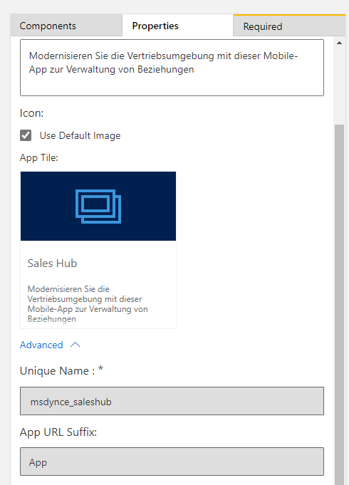 You can find the unique app name by opening the app designer and clicking on the properties tab as shown in the image below.